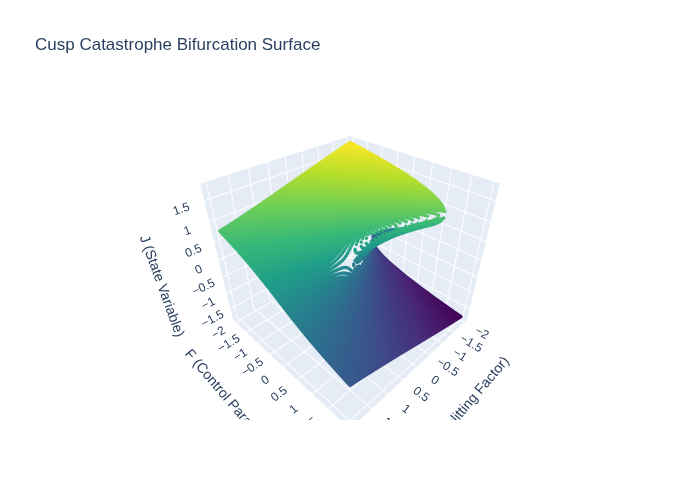 Cusp catastrophe model with control variables CC and FF, and state variable JJ