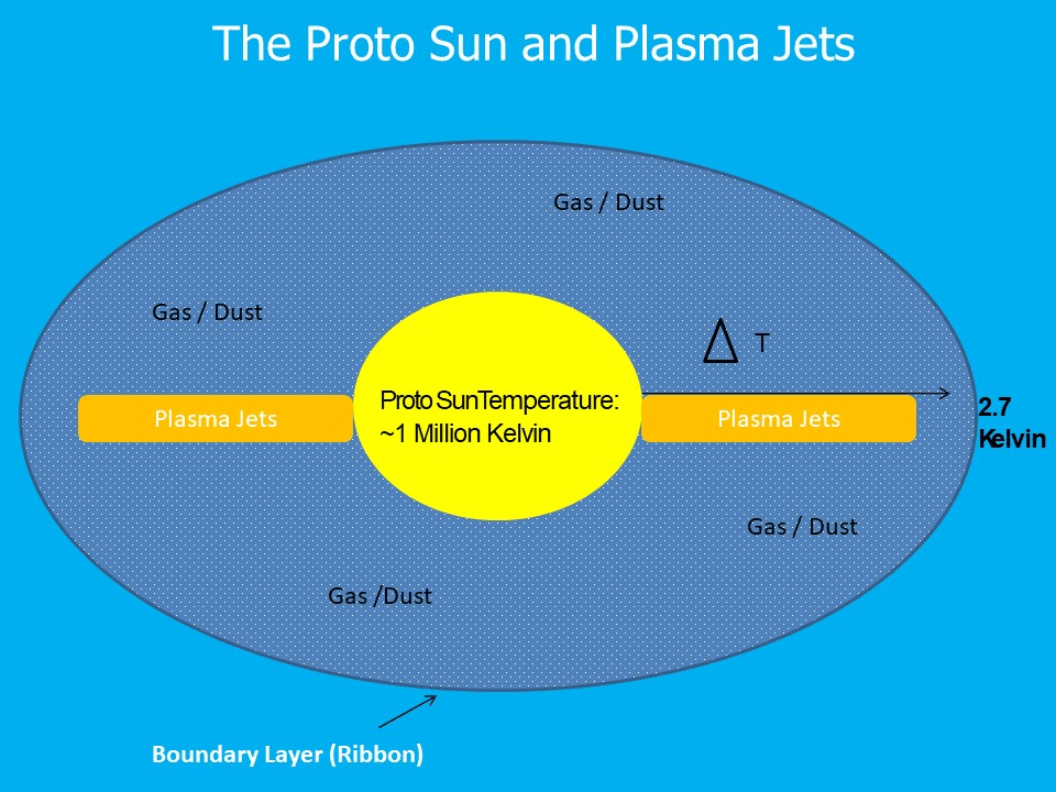 Our Sun was much hotter in the past. As a young protostar, the Sun likely had a temperature of 1 million kelvin. Plasma jets would heat up the gas and dust disk around the proto-Sun.