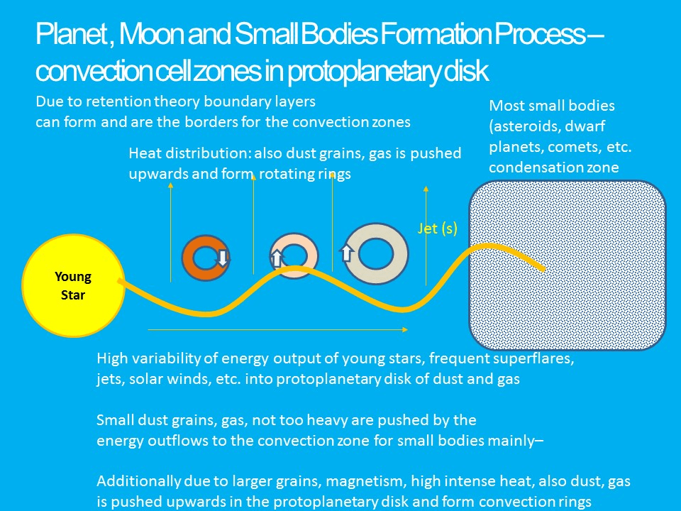 With a heat source—the proto-Sun with plasma jets—and a boundary layer (IBEX ribbon), convection cell rings formed in the gas and dust disk. The tilt and rotation of our planets today are an indication of this process.